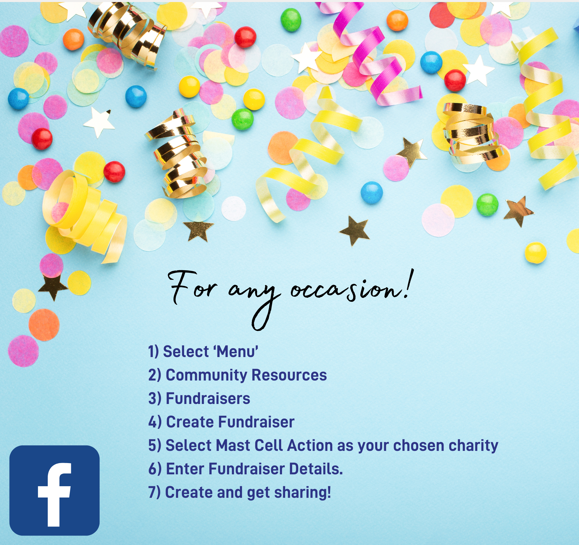 Together, we can create a world where MCAS is better understood, more manageable, and where support is readily available for those in need. Join us in making a lasting impact—start your Facebook fundraiser today!