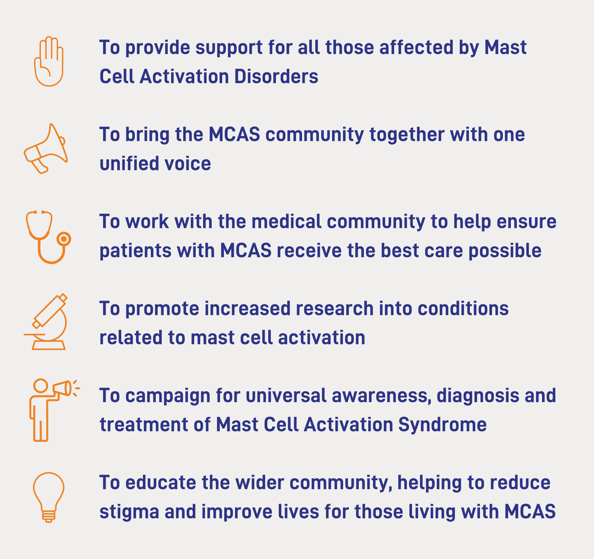 Our charitable objective is to improve the lives of people affected by Mast Cell Activation Syndrome.