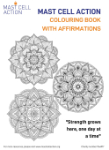 Relaxing and creative activities like mandala colouring can help foster mindfulness and calm a busy mind. Why not spend some time colouring in these beautiful mandalas, drawn by talented Mast Cell Action supporter Ivy Lewis, and lose yourself in your own creative vision. As each colour fills the spaces in this book, may your heart find calm, your mind find focus, and your spirit find strength. You are your own masterpiece.